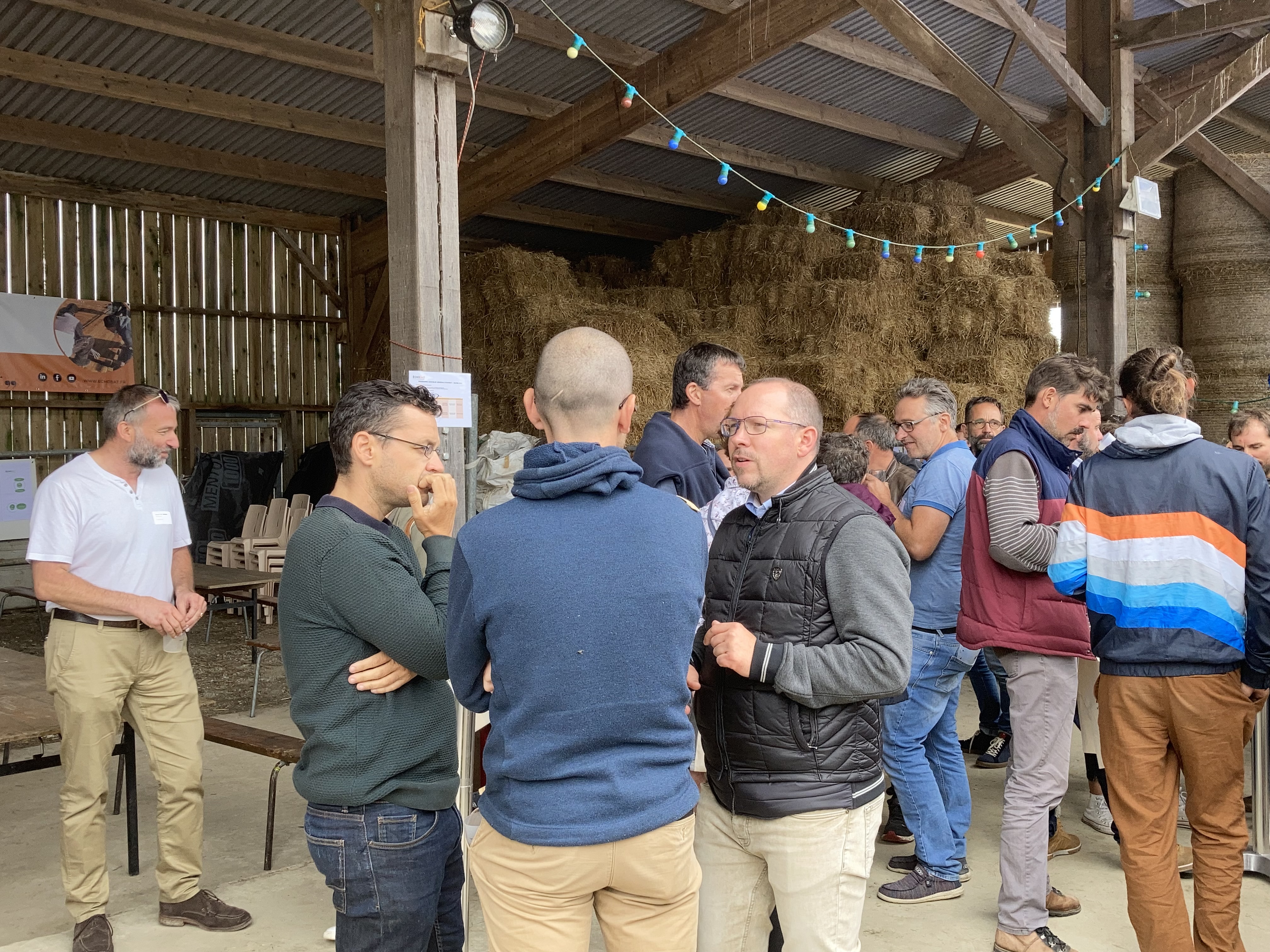 L'objectif de l'après-midi : faciliter les échanges entre membres ÉCHOBAT. Nouveauté 2022 : des ateliers par et pour les adhérents étaient proposés sur le béton chaux-chanvre et le remplissage ossature bois en paille ainsi que des ateliers thématiques (innovation sociale, insertion et recrutement, mallette pédagogique et formation, réemploi et déchets).
