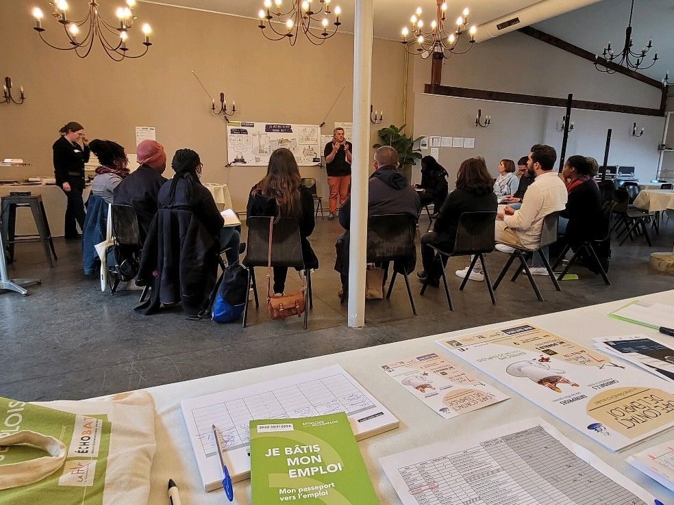Le 18 octobre 2022, les adhérents ÉCHOBAT du groupe Sud Loire se mobilisaient pour faire découvrir les métiers de l’écoconstruction à des demandeurs d’emplois.